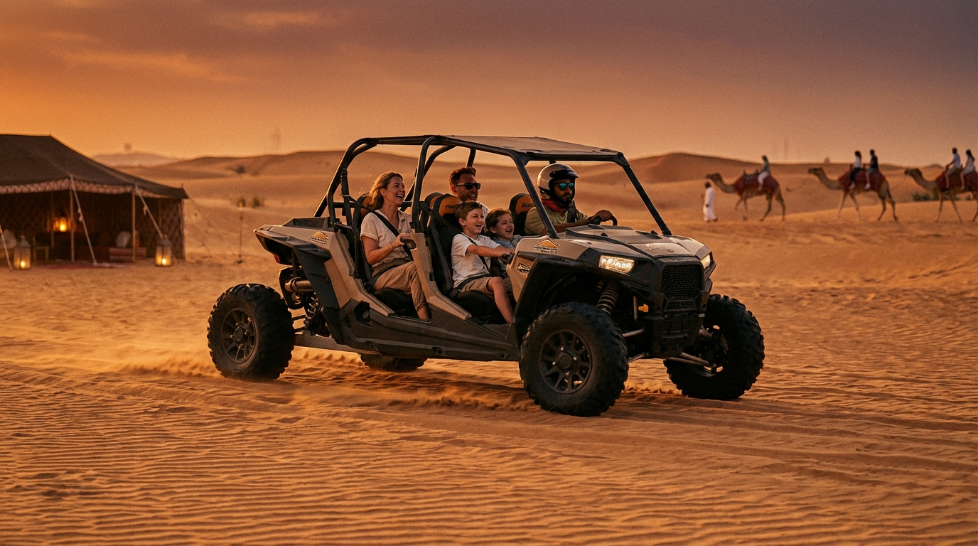 Beginners often worry about technical skill, safety and whether their family will enjoy the day. A driver-operated dune buggy removes much of the technical load: licensed drivers handle navigation and dune technique while you and your family enjoy the ride. That means less training, more photo time and a lower chance of being turned away for height/skill reasons. For parents and tourists, Buggy Dubai packages usually combine short practice runs with passenger seating and a full camp experience, which reduces friction for first-timers.