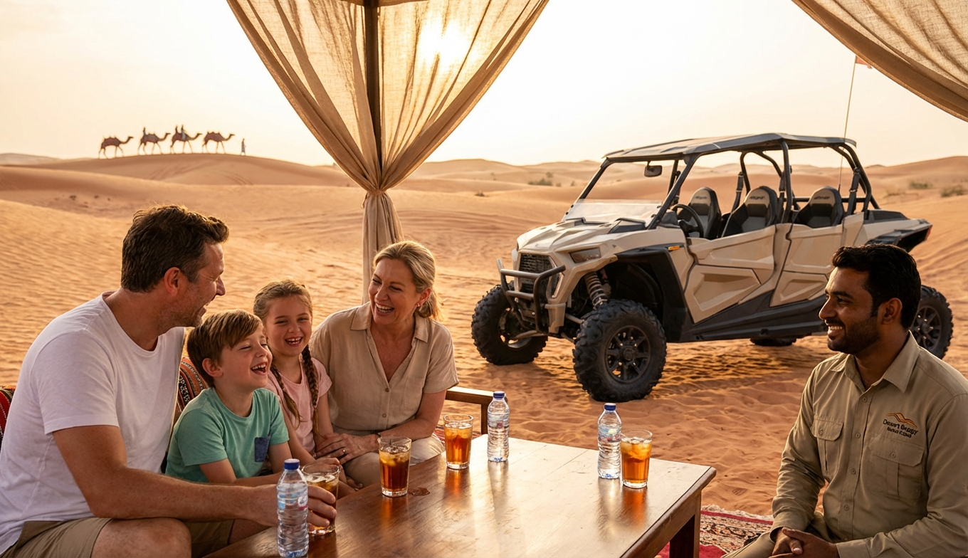 Desert Buggy Rental Dubai offers 24 hour booking, licensed guides, a modern maintained fleet and consistent pre-ride checks. Their morning family packages at Al Marmoom and Lahbab Red Dunes focus on comfort—shaded camps, chilled beverages and supervised kids activities—so parents can relax while everyone enjoys the desert.