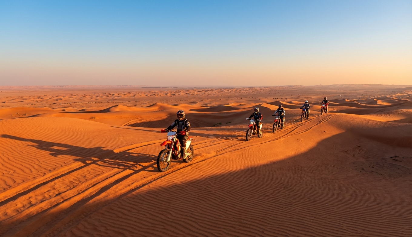 You want a plan that trades stress for highlight moments—calm coaching, safe vehicles, and a gallery of warm, golden‑hour portraits. With door‑to‑door transfers, comfort‑first camps on Lahbab Red Dunes and Al Marmoom, and licensed guides who raise pace only when you are ready, your dirt bike dubai day becomes the most effortless chapter of your trip. Choose a crisp morning for traction and quick learning, or chase a sunset session that flows into dinner under the stars. Either way, you will ride at your pace, pause for portraits, and glide back to the city relaxed and smiling.