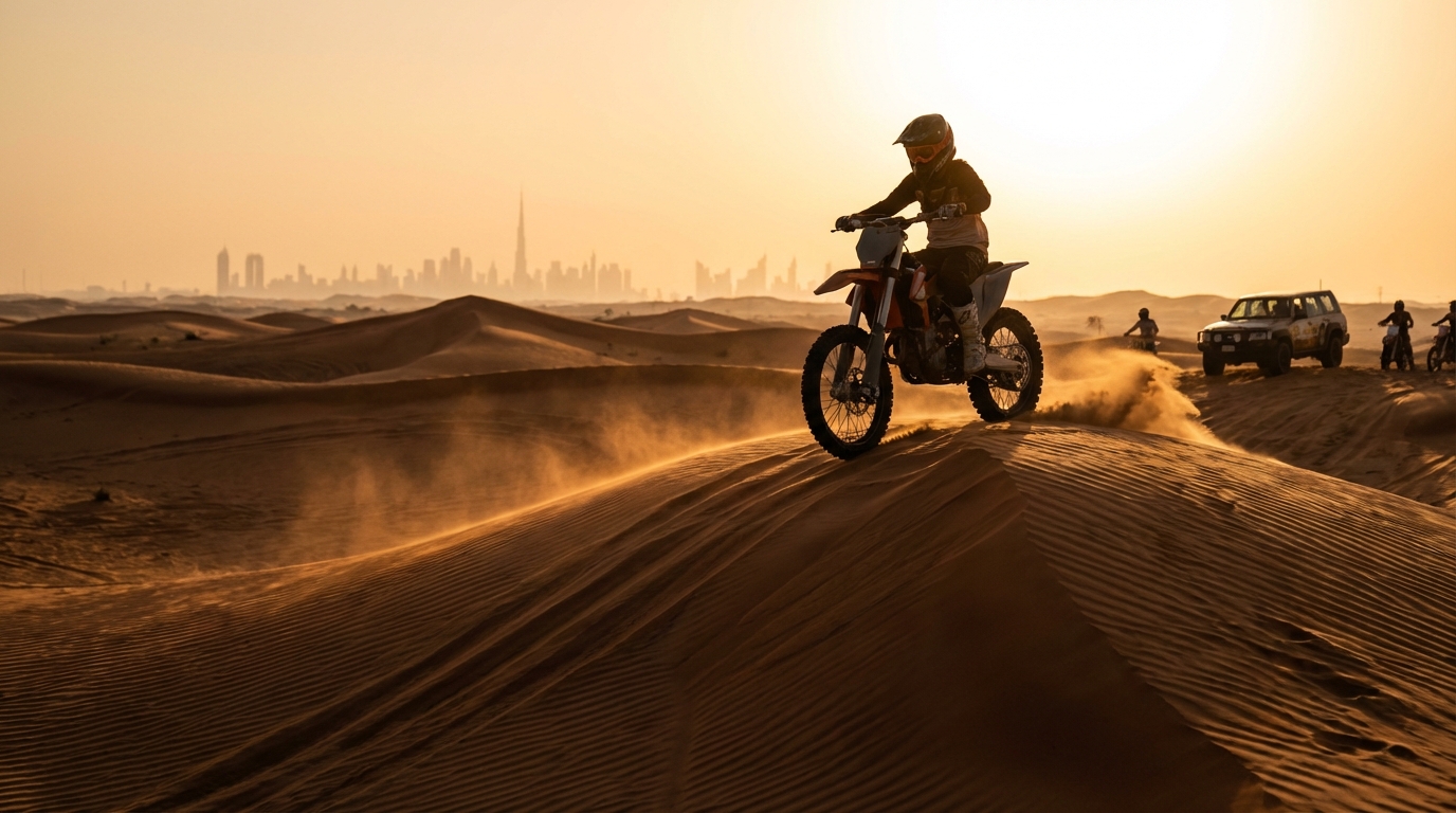 With licensed guides, door‑to‑door transfers, and comfort‑first camps on Lahbab Red Dunes and Al Marmoom, your dirt bike dubai beginner day can be both calm and thrilling. Pick a crisp morning for traction and learning, or chase a golden‑hour session that flows into dinner under the stars. Either way, you will bring home skills and photos that feel effortless.