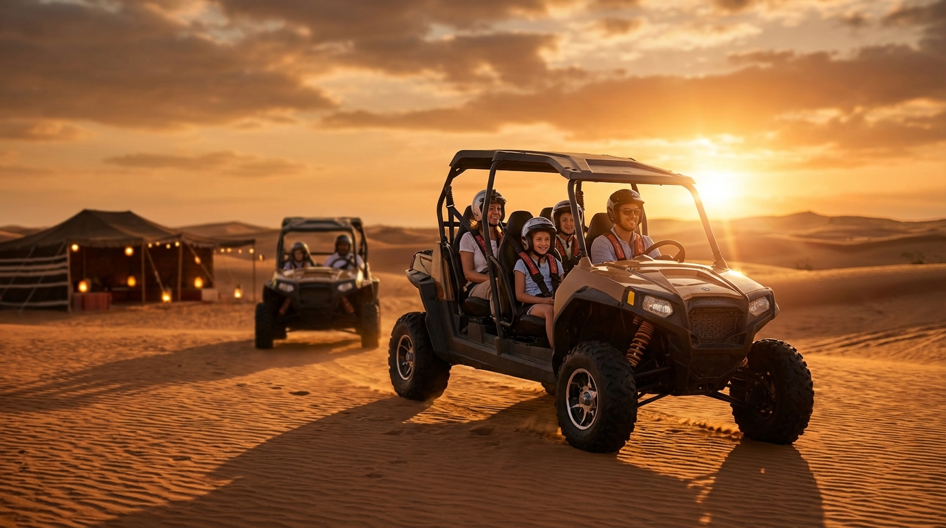 Overall, a dune buggy dubai self drive trip is worth it in 2026 when you balance thrill with sensible planning. Pick the right launch field — Al Marmoom for family-friendly mornings or Lahbab Red Dunes for dramatic sunset photography — and choose one high-value upgrade such as private transfer or pro-media to uplift the whole group’s experience. Safety is a shared responsibility: follow briefings, trust licensed guides and check harness fit on arrival. For families and tourists in the UAE, a well-run self drive combines control, shared memories and professional support to make a desert day memorable and comfortable.