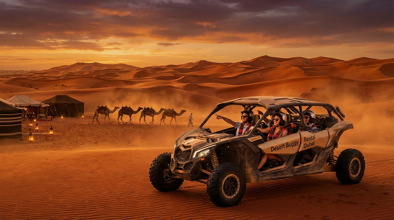 The desert transforms after sunset and an evening safari dubai offers a chance to watch the dunes glow, enjoy a relaxed camp meal and share an active adventure with family or friends. If you live in the Emirates or are visiting, booking with Desert Buggy Rental Dubai gives you licensed guides, door-to-door pickup and a modern fleet that handles logistics so your group can focus on the experience. In January 2026 more families are choosing evening windows at Lahbab Red Dunes for cinematic photos while others pick Al Marmoom for gentler terrain and earlier pick-up windows. This guide explains why a guided evening safari is the smart, safe and memorable choice for residents, tourists and families in Dubai.