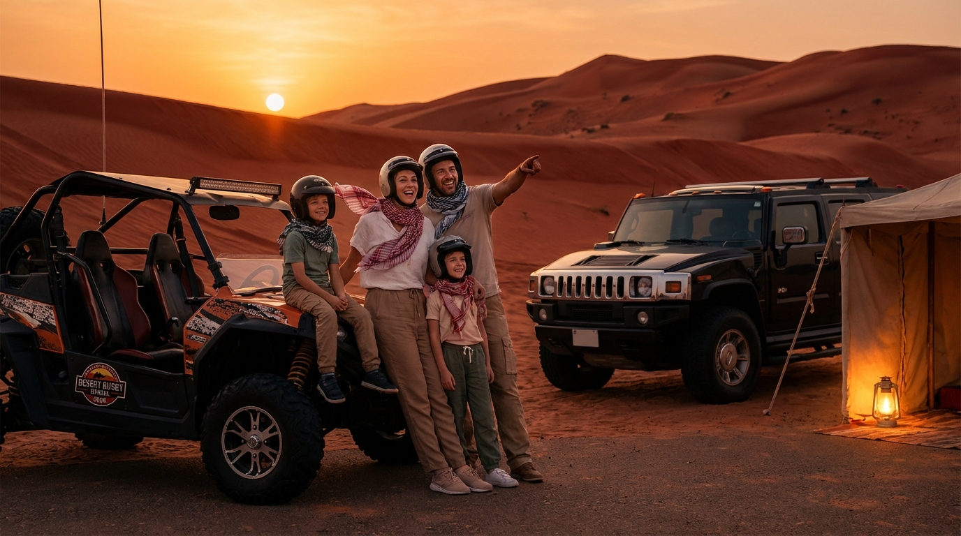 When you prepare properly, an evening safari abu dhabi becomes a memorable family highlight: golden-hour photos, a comfortable camp dinner and activities that suit kids and adults alike. Prioritise private transfers if you travel with young children, confirm age/height requirements for driving activities, and consider upgrades such as private tents or plated dinners for added comfort. For 24 hours booking, instant vouchers, and customised family packages contact Desert Buggy Rental Dubai — they operate across Al Marmoom, Lahbab Red Dunes, Dubai, Sharjah, Abu Dhabi and Ras Al Khaimah and will help you choose the right package based on ages, mobility and interests.
