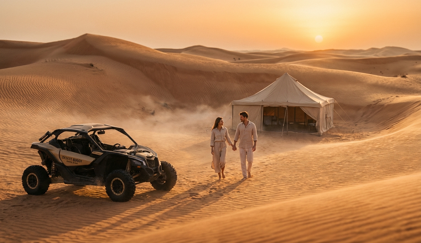 “We recommend a private tent and a pro-media package for couples who want to be present and not worry about photos—those little choices make a big difference.” — Senior Guide, Desert Buggy Rental Dubai