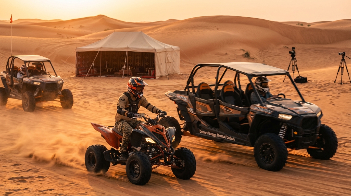 Yes. Desert Buggy Rental Dubai organises private convoys, corporate events and bespoke camps with AV and catering. Provide final headcount and requirements early so staff can arrange vehicles and catering accordingly.