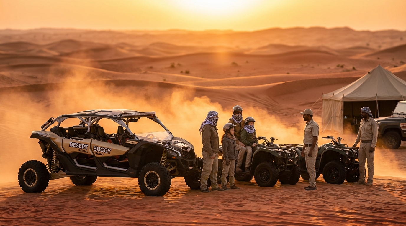 ドバイのデザートバギーレンタルは、アル・マルムーム、ラハバブ・レッドデューンズ、ドバイ、シャルジャ、アブダビ、ラスアルハイマ全域で、認可を受けたガイド、最新の整備された車両、24時間対応の予約サポートを提供しています。詳細なバウチャー、裸足の身長に合わせたブースターの割り当て、当日のトラブルを最小限に抑えるための家族向けアップグレードなどをご用意しています。