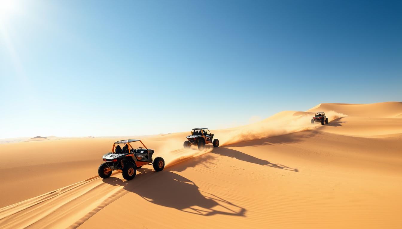 Lowani kudziko la dune buggy Dubai. Chipululu chimakhala malo anu osewerera! Kukwera ngolo sikothamanga chabe. Zimakugwirizanitsani ndi malo okongola komanso chikhalidwe.