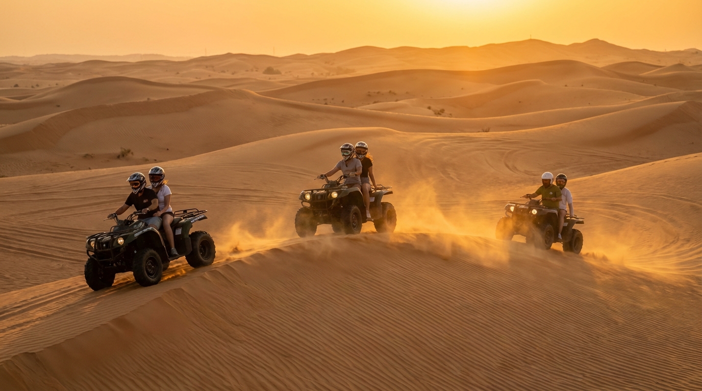A cena dos quadriciclos em Sharjah está no auge neste inverno. A partir de 29 de dezembro de 2025, as operadoras em todos os Emirados Árabes Unidos relatam a confirmação de horários de pico ao pôr do sol nos fins de semana. dias mais cedo do que na temporada passada, especialmente em torno de Al Badayer e Al Faya, perto de Sharjah, com interesse indireto em Lahbab Red Dunes e Al Marmoom, em Dubai. Se você quiser quadriciclos em Sharjah Adicione este guia à sua agenda sem pagar a mais. Este resumo informativo apresenta opções claras, o que está incluído e a maneira mais rápida de reservar, com capacetes e óculos de proteção prontos na chegada. Você pode reservar 24 horas por dia, 7 dias por semana. Aluguel de buggy no deserto em Dubai, uma equipe licenciada que atende moradores, turistas e famílias em todos os Emirados Árabes Unidos.