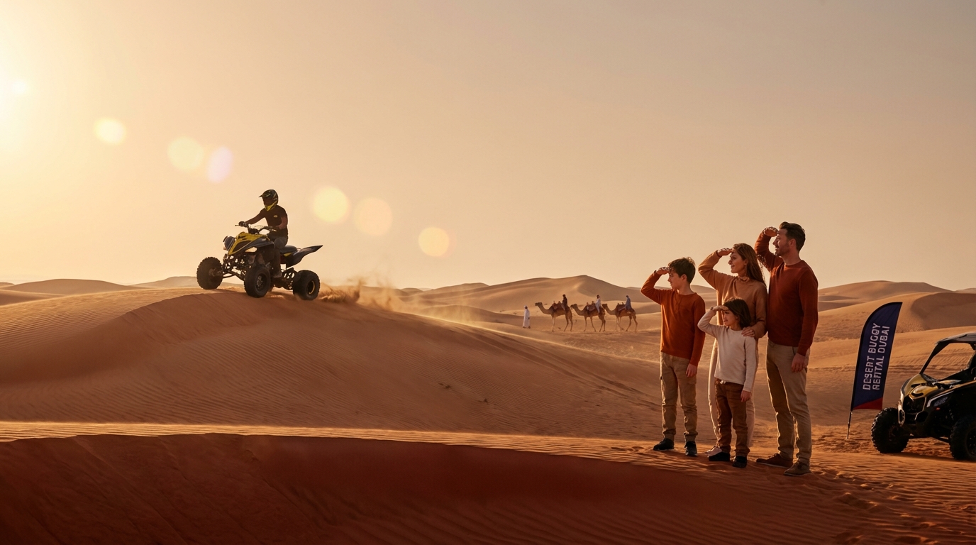 Pick a morning quad session in RAK for firmer sand and fast learning. If sunset portraits matter most, choose a focused evening set and add extra minutes only if you want more frames. Families often mix a short Camel Ride for kids with a compact quad loop for teens. You can upgrade to VIP seating for a quieter camp corner.