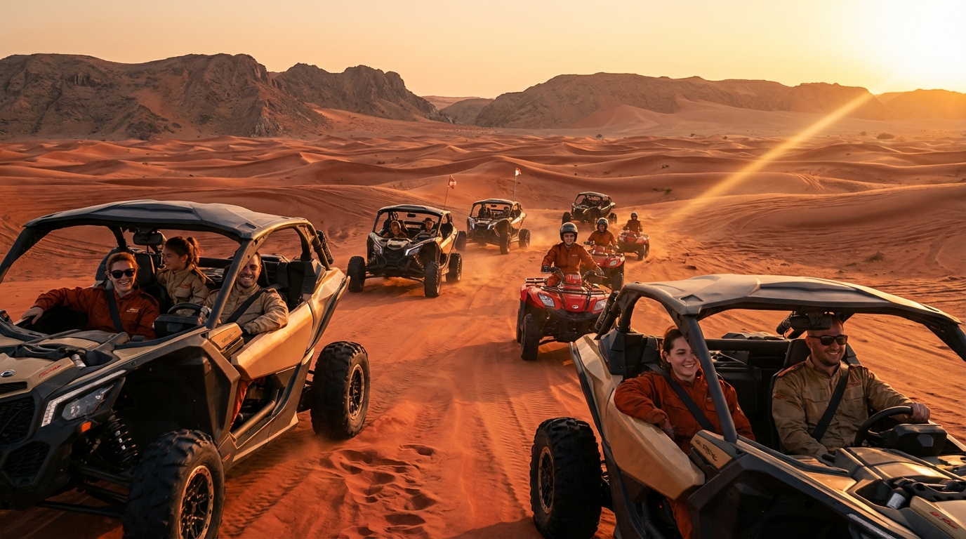 Multi-seat dune buggies and guided quad convoys let non-drivers and younger guests enjoy camp activities while drivers take turns on the dunes. That format keeps the day social and manageable for families.