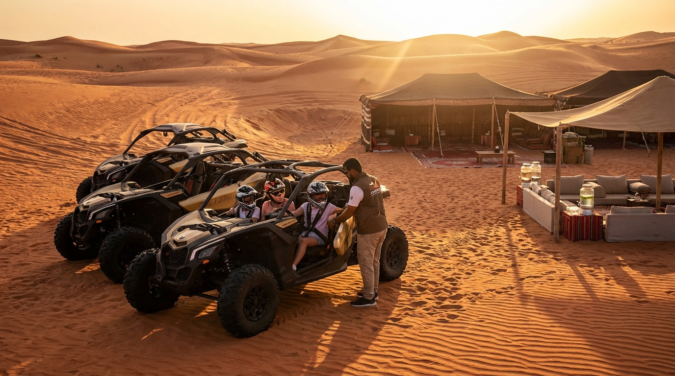 Управление багги — это активный, совместный опыт: вы чувствуете песок, управляете транспортным средством и создаете воспоминания со своей группой. Этот практический элемент в сочетании с инструктажем по технике безопасности и логистике делает самостоятельные поездки на багги одним из самых популярных видов активного отдыха в ОАЭ в январе 2026 года.