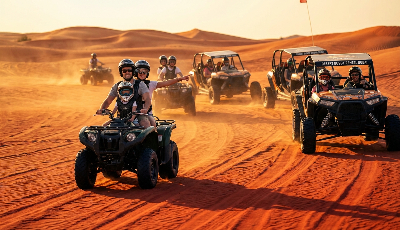 Mix vehicle types — some riders on quads, others in dune buggies or passenger 4x4s. Desert Buggy Rental Dubai can allocate vehicles to balance confidence and fun.