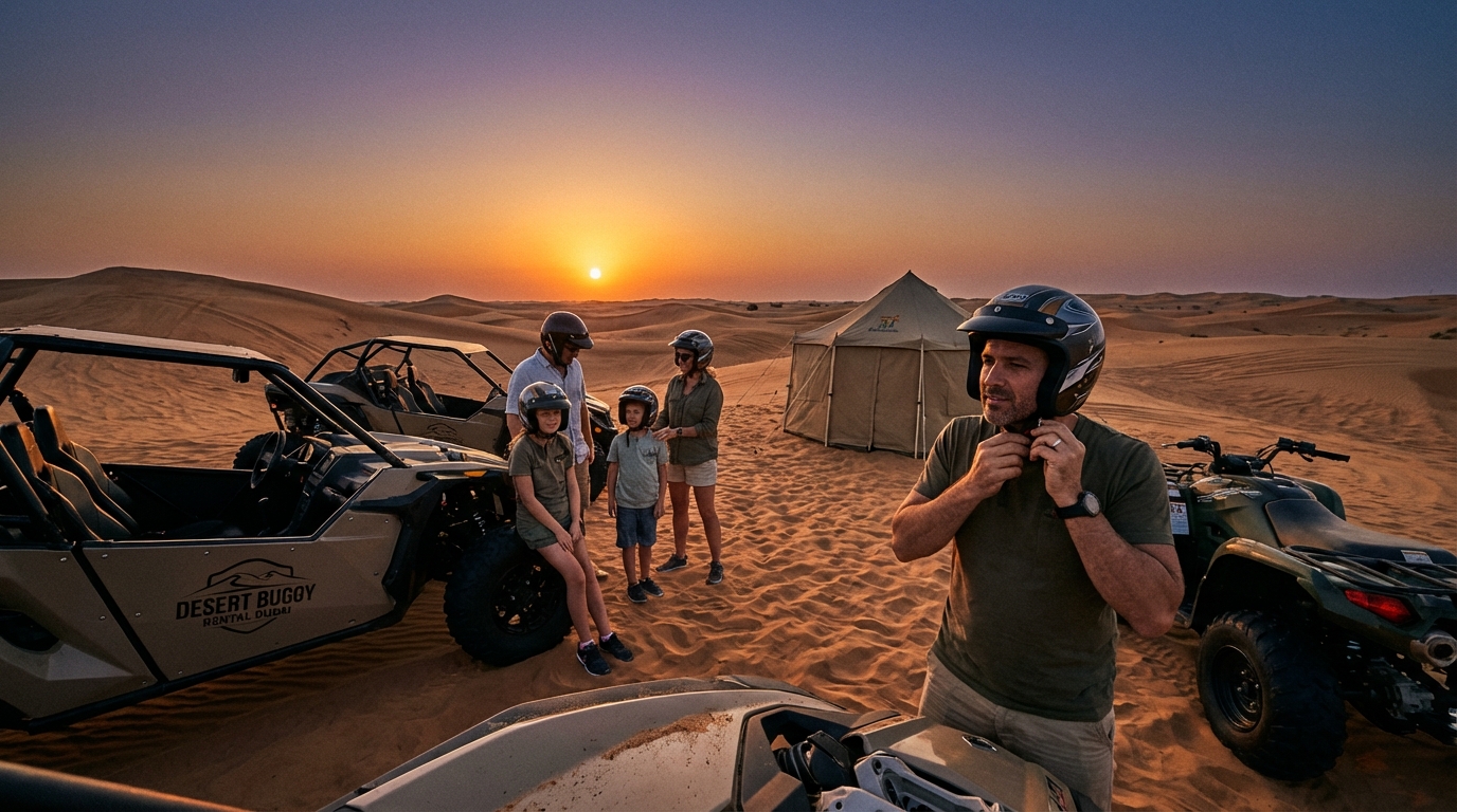 Reconfirm driver plate, pickup time, passenger names and exact centimetre heights the night before to avoid last-minute problems. Desert Buggy Rental Dubai offers 24 hours booking support to make this simple.