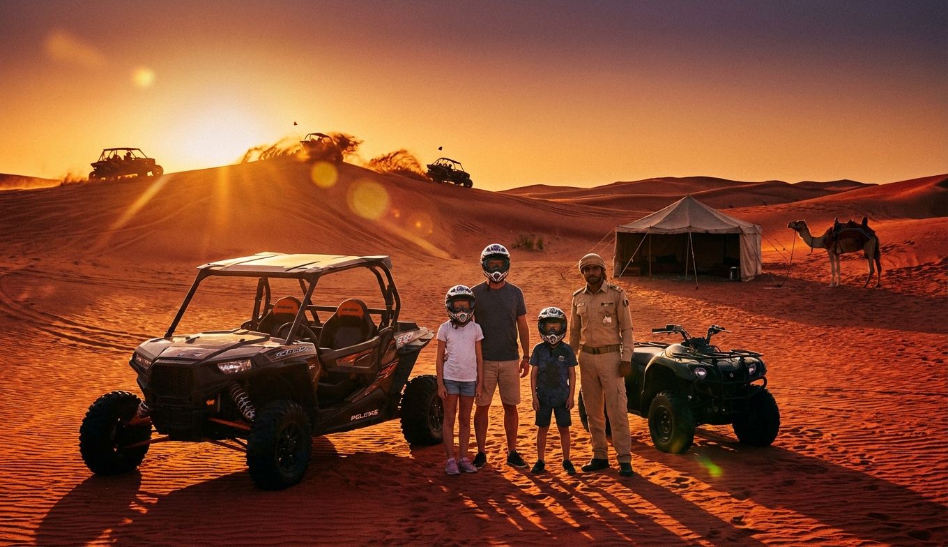 The main activity choices affect inclusions: dune buggies (driver-operated), quad bikes (rider-controlled), passenger 4x4s, camel rides and camp-only options. The activity you pick determines training time, height requirements and whether boosters are needed.